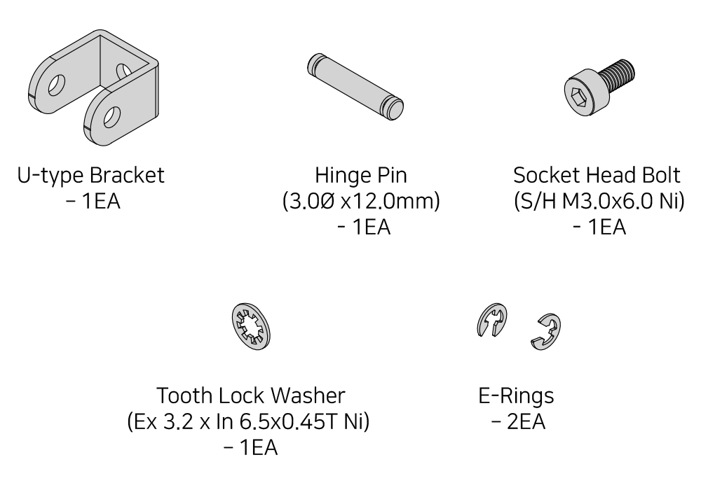 U Type Rod-End Bracket은 mightyZAP 액츄에이터의 기본 악세서리인 Rod-end tip의 대체 옵션으로, 사용자가 원하는 각도를 보다 쉽고 자유롭게 설정할 수 있습니다.