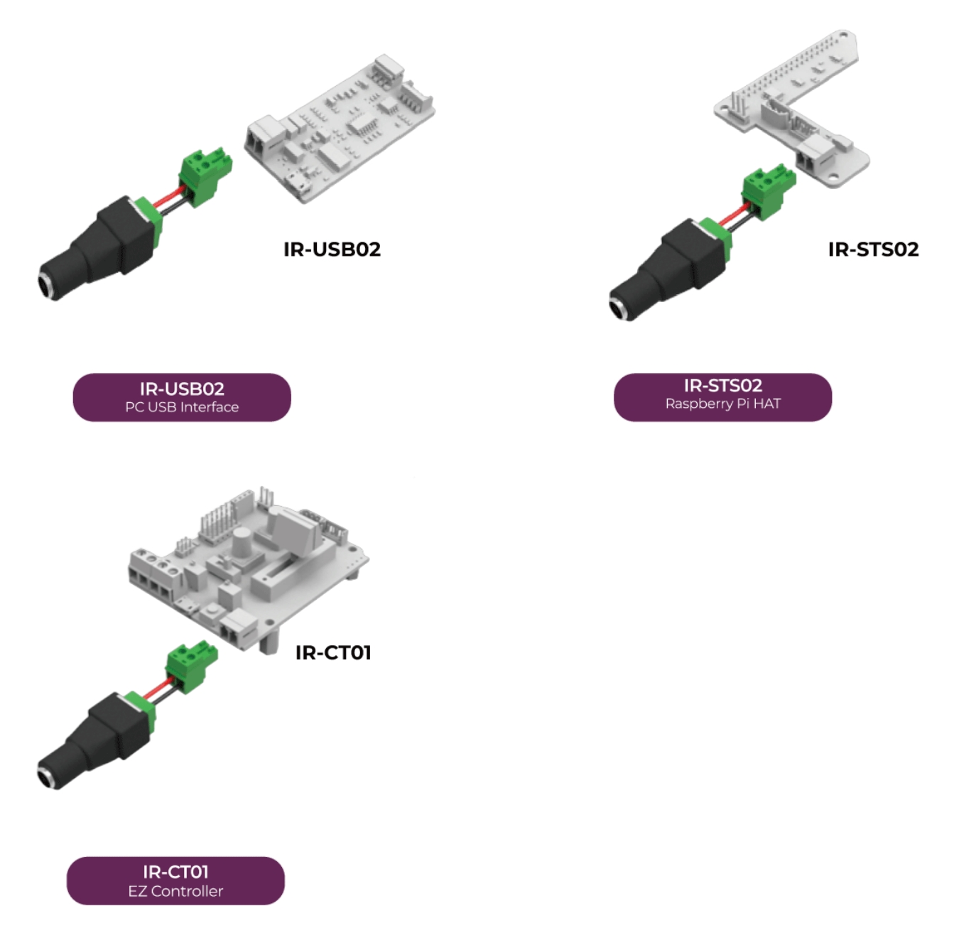 제품 사용전에 아래와 같이 IR-AG01을 조립한 후에 아답터에 체결하여 당사에서 판매하는 각종 BOARD류에 연결이 가능합니다.